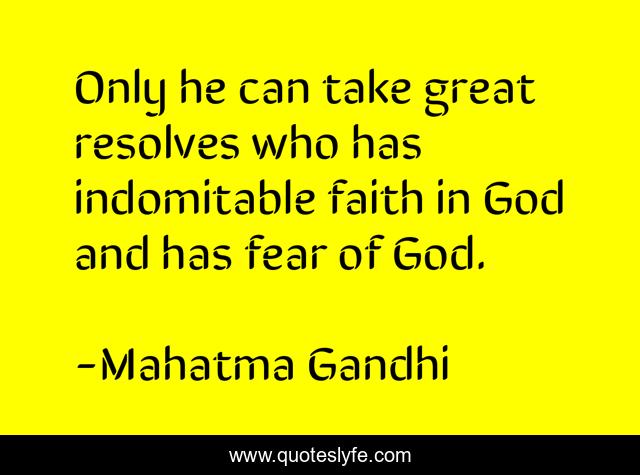 This page presents the quote "Only he can take great resolves who has indomitable faith in God and has fear of God.". Author of this quote is Mahatma Gandhi. This quote is about faith, great, god,.