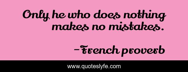 This page presents the quote "Only he who does nothing makes no mistakes.". Author of this quote is French proverb. This quote is about failures, mistakes,.