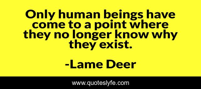 This page presents the quote "Only human beings have come to a point where they no longer know why they exist.". Author of this quote is Lame Deer. This quote is about reason, humankind, existance,.