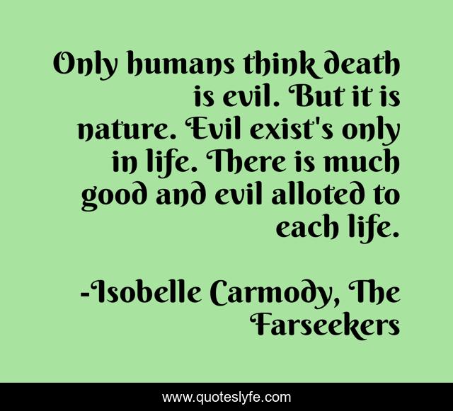 "Isobelle Carmody, The Farseekers Quotes." Quoteslyfe.com, 2025. Tue. 09 Dec. 2025. <https://www.quoteslyfe.com/quote/Only-humans-think-death-is-evil-But-123812>.