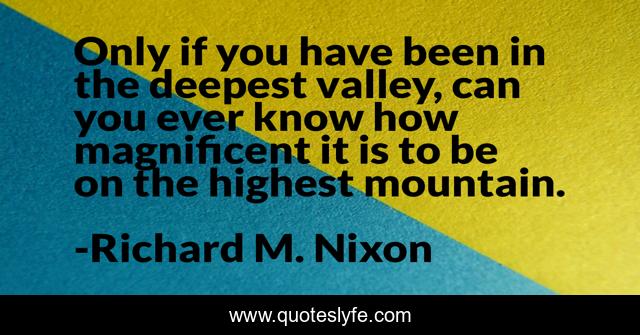 This page presents the quote "Only if you have been in the deepest valley, can you ever know how magnificent it is to be on the highest mountain.". Author of this quote is Richard M. Nixon. .