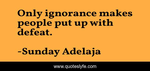 This page presents the quote "Only ignorance makes people put up with defeat.". Author of this quote is Sunday Adelaja. This quote is about ignorance, defeat,.