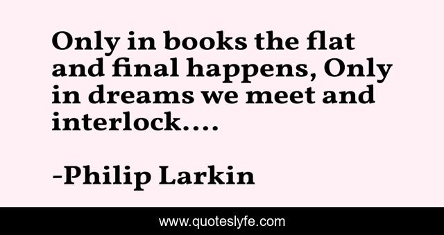 This page presents the quote "Only in books the flat and final happens, Only in dreams we meet and interlock....". Author of this quote is Philip Larkin. .