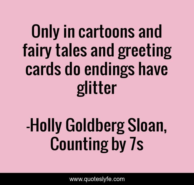 This page presents the quote "Only in cartoons and fairy tales and greeting cards do endings have glitter". Author of this quote is Holly Goldberg Sloan, Counting by 7s. This quote is about endings, reality,.