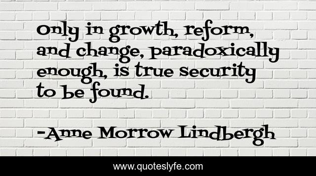 This page presents the quote "Only in growth, reform, and change, paradoxically enough, is true security to be found.". Author of this quote is Anne Morrow Lindbergh. This quote is about security, growth, changes,.