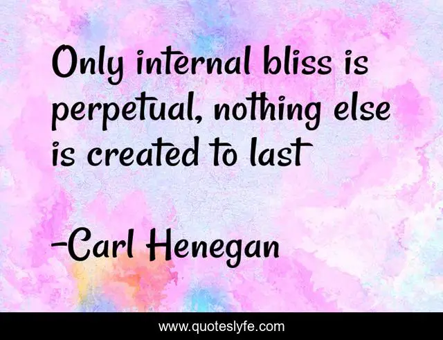 This page presents the quote "Only internal bliss is perpetual, nothing else is created to last". Author of this quote is Carl Henegan. This quote is about bliss, internal-peace, happiness,.