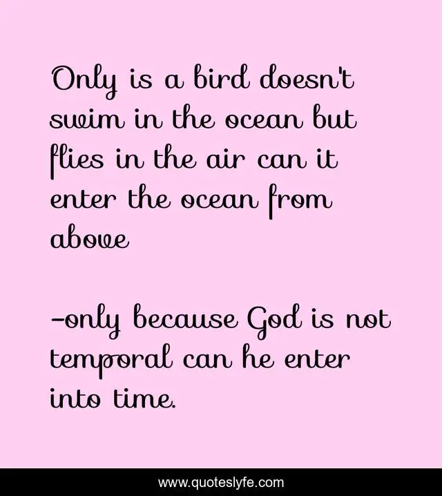 "only because God is not temporal can he enter into time. Quotes." Quoteslyfe.com, 2025. Fri. 05 Dec. 2025. <https://www.quoteslyfe.com/quote/Only-is-a-bird-doesn-t-swim-11370>.