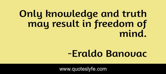 This page presents the quote "Only knowledge and truth may result in freedom of mind.". Author of this quote is Eraldo Banovac. This quote is about knowledge, inspirational, philosophy, mind, freedom-of-thought, truth, enthusiasm,.