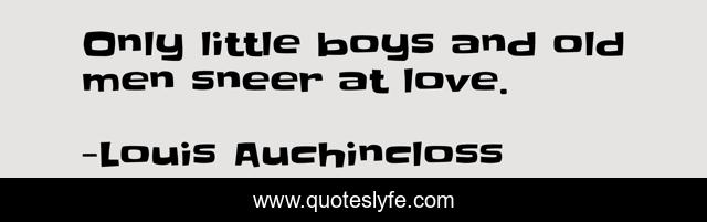 This page presents the quote "Only little boys and old men sneer at love.". Author of this quote is Louis Auchincloss. This quote is about love, age, sentimental, passion, affection,.