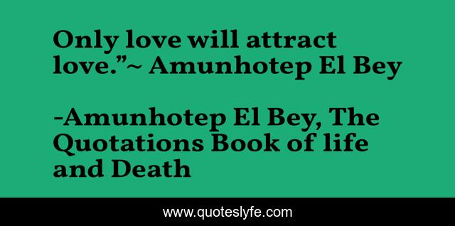"Amunhotep El Bey, The Quotations Book of life and Death Quotes." Quoteslyfe.com, 2025. Sun. 07 Dec. 2025. <https://www.quoteslyfe.com/quote/Only-love-will-attract-love-Amunhotep-El-41424>.