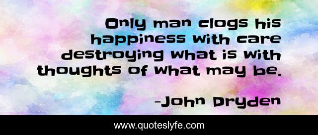 This page presents the quote "Only man clogs his happiness with care destroying what is with thoughts of what may be.". Author of this quote is John Dryden. .