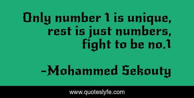 "Mohammed Sekouty Quotes." Quoteslyfe.com, 2025. Fri. 05 Dec. 2025. <https://www.quoteslyfe.com/quote/Only-number-1-is-unique-rest-is-14482>.