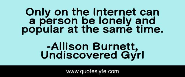 This page presents the quote "Only on the Internet can a person be lonely and popular at the same time.". Author of this quote is Allison Burnett, Undiscovered Gyrl. This quote is about loneliness, internet, blogging, loneliness-on-the-net,.