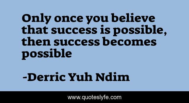 This page presents the quote "Only once you believe that success is possible, then success becomes possible". Author of this quote is Derric Yuh Ndim. This quote is about thinking, actions, believes, unlocking-your-true-potential, values, inspirational-for-writers, personal-development, inspirational-success-failure, inspiration,.