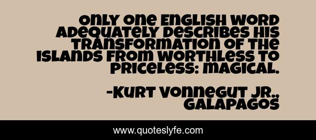 This page presents the quote "Only one English word adequately describes his transformation of the islands from worthless to priceless: magical.". Author of this quote is Kurt Vonnegut Jr., Galápagos. This quote is about wit, humor,.