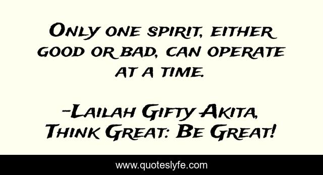 "Lailah Gifty Akita, Think Great: Be Great! Quotes." Quoteslyfe.com, 2025. Fri. 05 Dec. 2025. <https://www.quoteslyfe.com/quote/Only-one-spirit-either-good-or-bad-118614>.