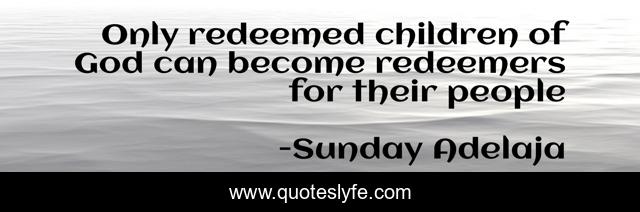 This page presents the quote "Only redeemed children of God can become redeemers for their people". Author of this quote is Sunday Adelaja. This quote is about god, redeemed, people, children, redeemers,.