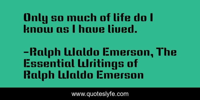 This page presents the quote "Only so much of life do I know as I have lived.". Author of this quote is Ralph Waldo Emerson, The Essential Writings of Ralph Waldo Emerson. This quote is about life, favorite-author, experience,.