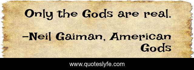 "Neil Gaiman, American Gods Quotes." Quoteslyfe.com, 2025. Fri. 05 Dec. 2025. <https://www.quoteslyfe.com/quote/Only-the-Gods-are-real-235205>.