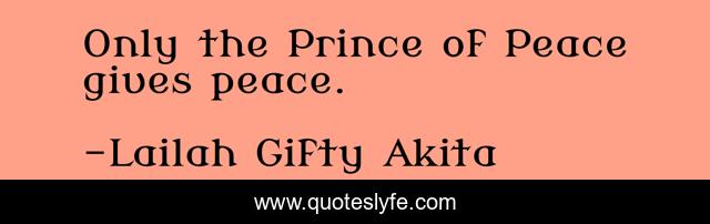 This page presents the quote "Only the Prince of Peace gives peace.". Author of this quote is Lailah Gifty Akita. This quote is about peace, christian, prince,.