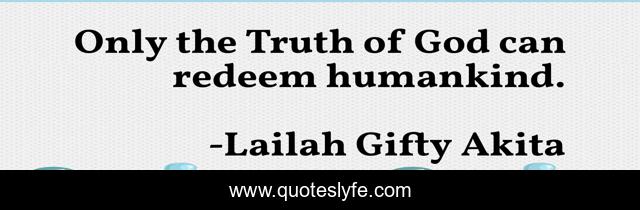 This page presents the quote "Only the Truth of God can redeem humankind.". Author of this quote is Lailah Gifty Akita. This quote is about god, redeem, humanity, truth,.
