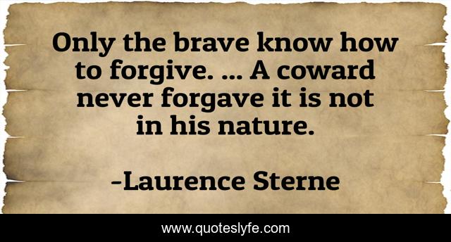This page presents the quote "Only the brave know how to forgive. ... A coward never forgave it is not in his nature.". Author of this quote is Laurence Sterne. .