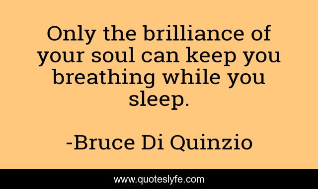 This page presents the quote "Only the brilliance of your soul can keep you breathing while you sleep.". Author of this quote is Bruce Di Quinzio. .