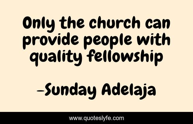 This page presents the quote "Only the church can provide people with quality fellowship". Author of this quote is Sunday Adelaja. This quote is about fellowship, church,.