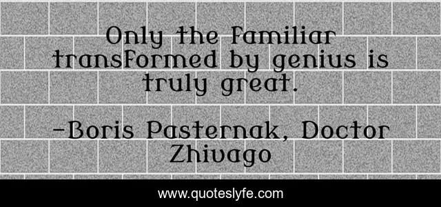 "Boris Pasternak, Doctor Zhivago Quotes." Quoteslyfe.com, 2025. Sat. 06 Dec. 2025. <https://www.quoteslyfe.com/quote/Only-the-familiar-transformed-by-genius-is-230825>.