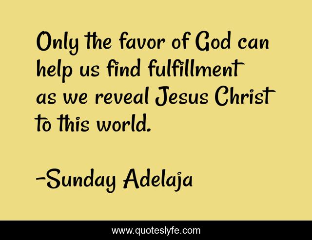 This page presents the quote "Only the favor of God can help us find fulfillment as we reveal Jesus Christ to this world.". Author of this quote is Sunday Adelaja. This quote is about jesus-christ, favor, fulfillment, reveal,.