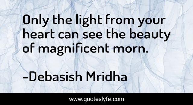 This page presents the quote "Only the light from your heart can see the beauty of magnificent morn.". Author of this quote is Debasish Mridha. This quote is about life, love, knowledge, inspirational, intelligence, philosophy, wisdom, quotes, affection,.