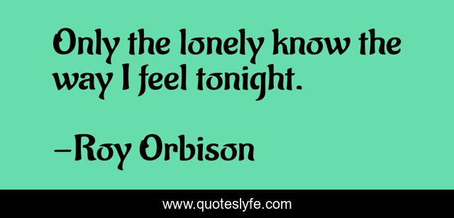 This page presents the quote "Only the lonely know the way I feel tonight.". Author of this quote is Roy Orbison. This quote is about lonely, way,.
