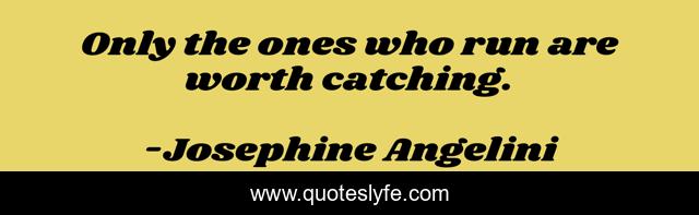 This page presents the quote "Only the ones who run are worth catching.". Author of this quote is Josephine Angelini. This quote is about catch, goddess, run, escape,.
