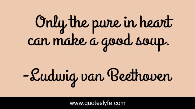 This page presents the quote "Only the pure in heart can make a good soup.". Author of this quote is Ludwig van Beethoven. This quote is about heart, good, soup,.