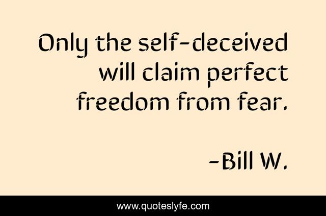 This page presents the quote "Only the self-deceived will claim perfect freedom from fear.". Author of this quote is Bill W.. .