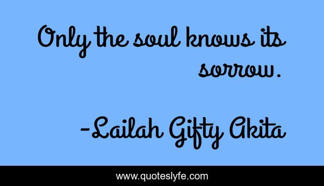 This page presents the quote "Only the soul knows its sorrow.". Author of this quote is Lailah Gifty Akita. This quote is about sorrow, humurous, life-lessons, soul,.