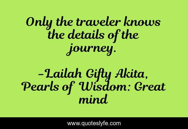"Lailah Gifty Akita, Pearls of Wisdom: Great mind Quotes." Quoteslyfe.com, 2025. Mon. 08 Dec. 2025. <https://www.quoteslyfe.com/quote/Only-the-traveler-knows-the-details-of-137223>.