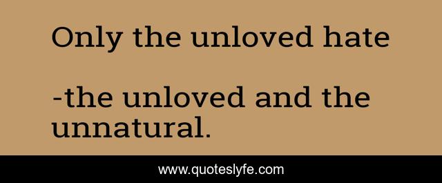 This page presents the quote "Only the unloved hate". Author of this quote is the unloved and the unnatural.. .
