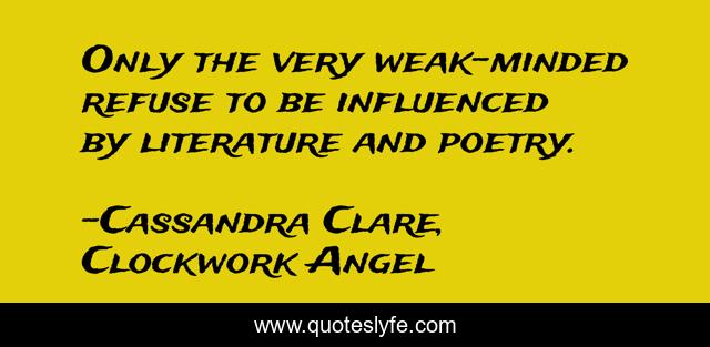 This page presents the quote "Only the very weak-minded refuse to be influenced by literature and poetry.". Author of this quote is Cassandra Clare, Clockwork Angel. This quote is about reading, books, poetry, literature, philosphy,.
