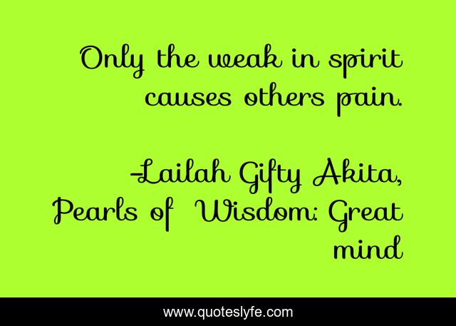 "Lailah Gifty Akita, Pearls of Wisdom: Great mind Quotes." Quoteslyfe.com, 2025. Fri. 05 Dec. 2025. <https://www.quoteslyfe.com/quote/Only-the-weak-in-spirit-causes-others-76391>.