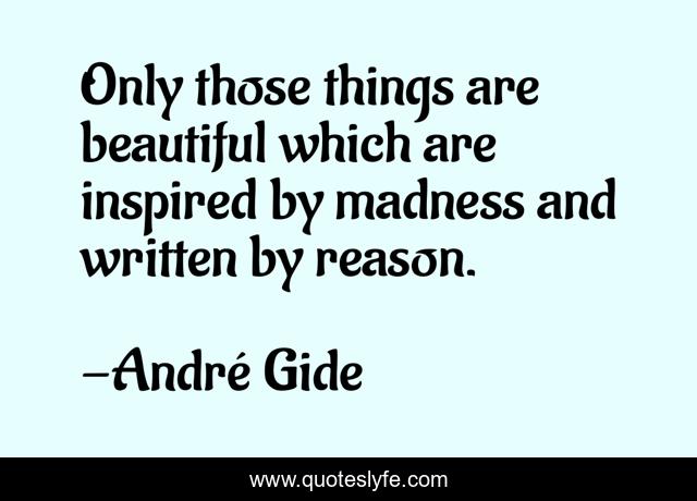 This page presents the quote "Only those things are beautiful which are inspired by madness and written by reason.". Author of this quote is André Gide. .
