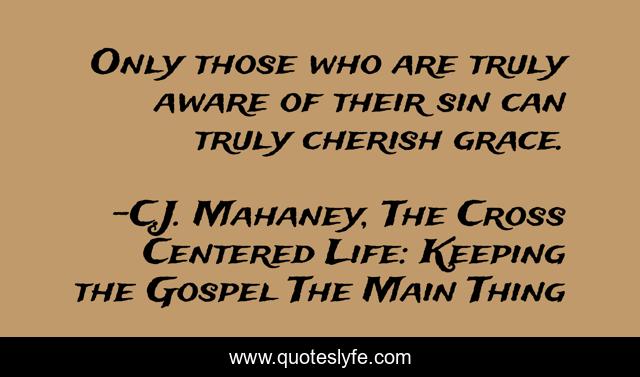 This page presents the quote "Only those who are truly aware of their sin can truly cherish grace.". Author of this quote is C.J. Mahaney, The Cross Centered Life: Keeping the Gospel The Main Thing. This quote is about sin, grace, cross,.