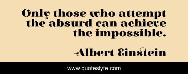 This page presents the quote "Only those who attempt the absurd can achieve the impossible.". Author of this quote is Albert Einstein. This quote is about achievement, enthusiasm, inspirational, optimism,.