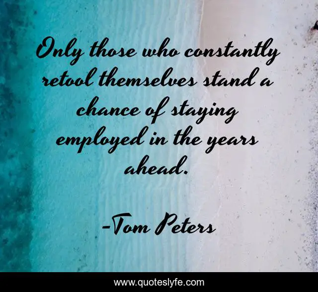 This page presents the quote "Only those who constantly retool themselves stand a chance of staying employed in the years ahead.". Author of this quote is Tom Peters. This quote is about employment, change, success, innovation,.