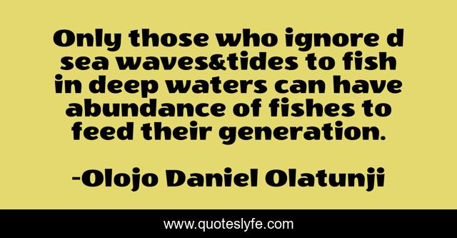 This page presents the quote "Only those who ignore d sea waves&tides to fish in deep waters can have abundance of fishes to feed their generation.". Author of this quote is Olojo Daniel Olatunji. This quote is about enthusiasm, inspirational, success, wisdom,.