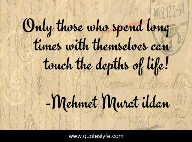 This page presents the quote "Only those who spend long times with themselves can touch the depths of life!". Author of this quote is Mehmet Murat ildan. This quote is about mehmet-murat-ildan, turkish, solitude, depths, depths-of-life, turkish-writers, turkish-literature,.