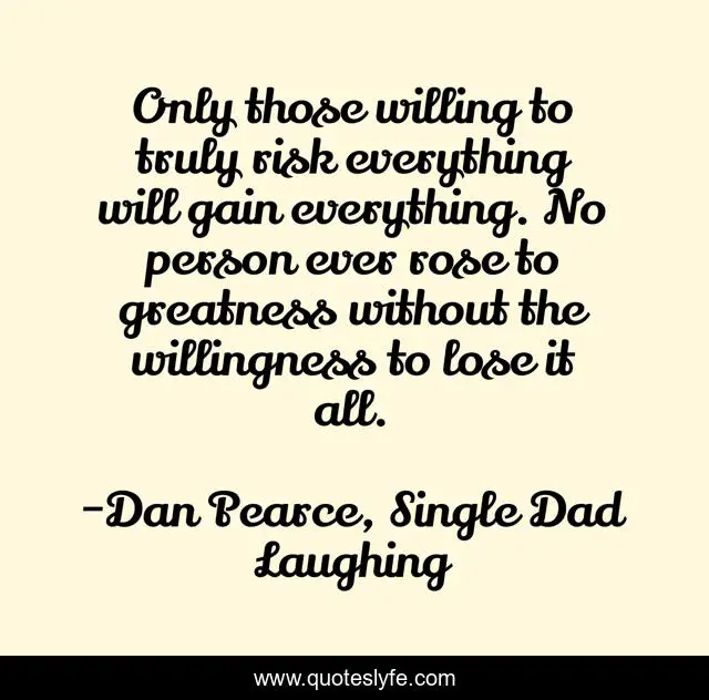 "Dan Pearce, Single Dad Laughing Quotes." Quoteslyfe.com, 2025. Tue. 09 Dec. 2025. <https://www.quoteslyfe.com/quote/Only-those-willing-to-truly-risk-everything-123019>.