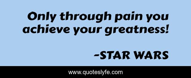 This page presents the quote "Only through pain you achieve your greatness!". Author of this quote is STAR WARS. This quote is about movie, quote,.