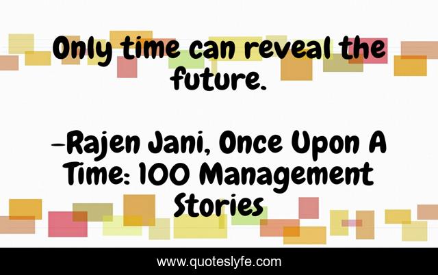 This page presents the quote "Only time can reveal the future.". Author of this quote is Rajen Jani, Once Upon A Time: 100 Management Stories. This quote is about motivation, communication, sales, anger, improvement, quality, management, knowledge, strategy,.