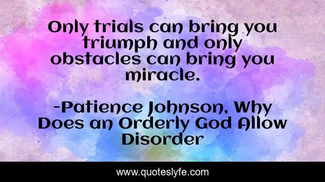 "Patience Johnson, Why Does an Orderly God Allow Disorder Quotes." Quoteslyfe.com, 2025. Mon. 08 Dec. 2025. <https://www.quoteslyfe.com/quote/Only-trials-can-bring-you-triumph-and-50978>.